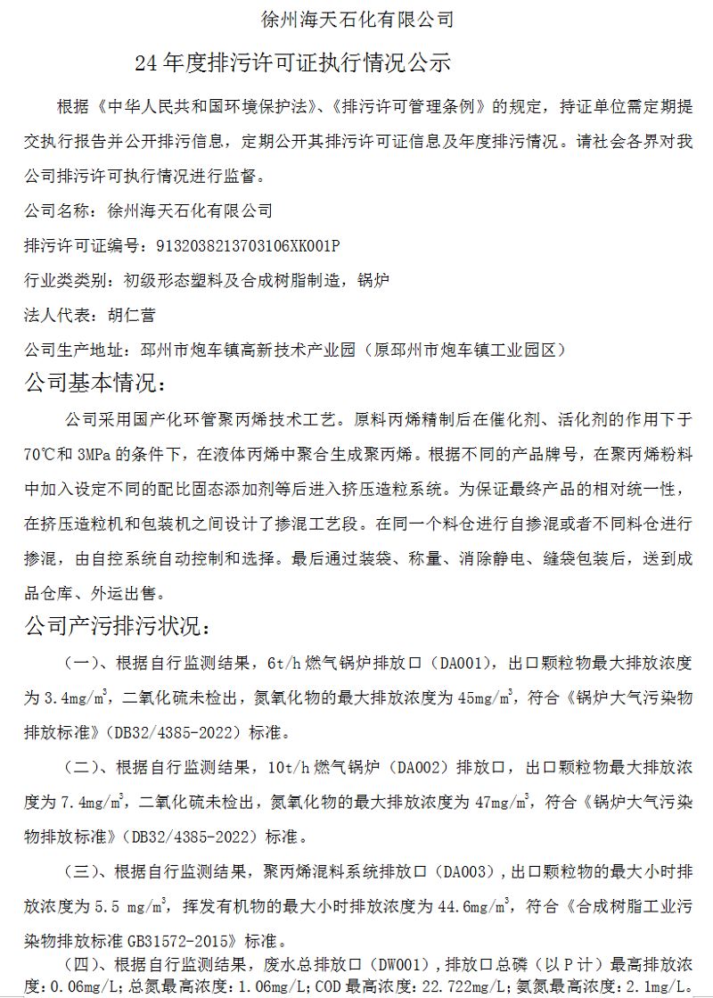 徐州J9集团官方网站石化有限公司 2024年度排污许可证执行情况公示